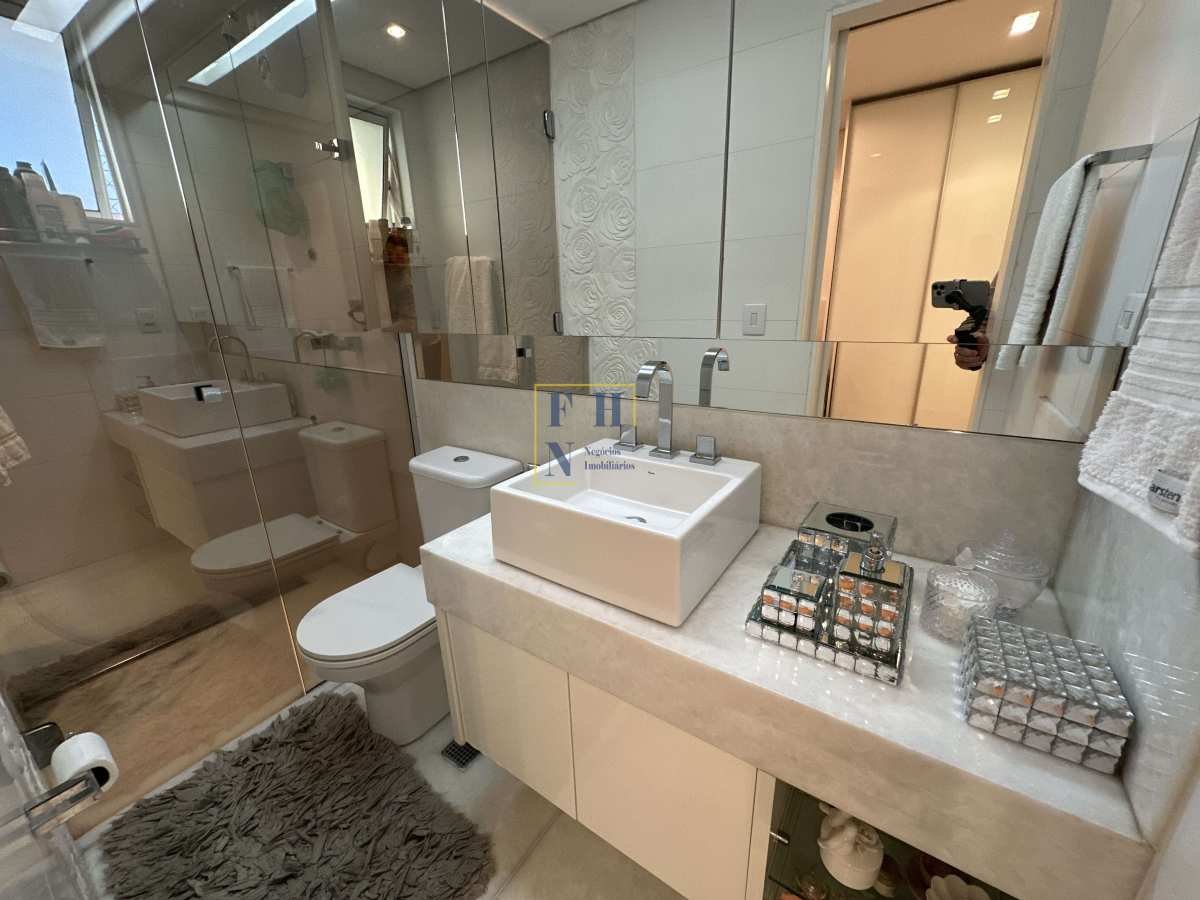 Um lavabo com acabamento de alto padrão complementa o conforto do pavimento.
